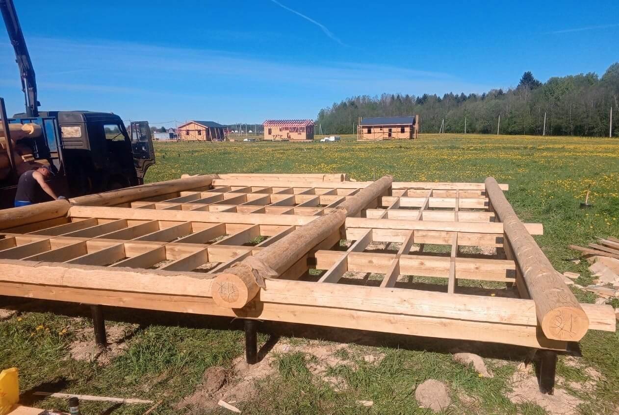 Обвязка из бруса — это прочный деревянный брус, который укладывается поверх свай по всему периметру здания и под внутренними стенами.