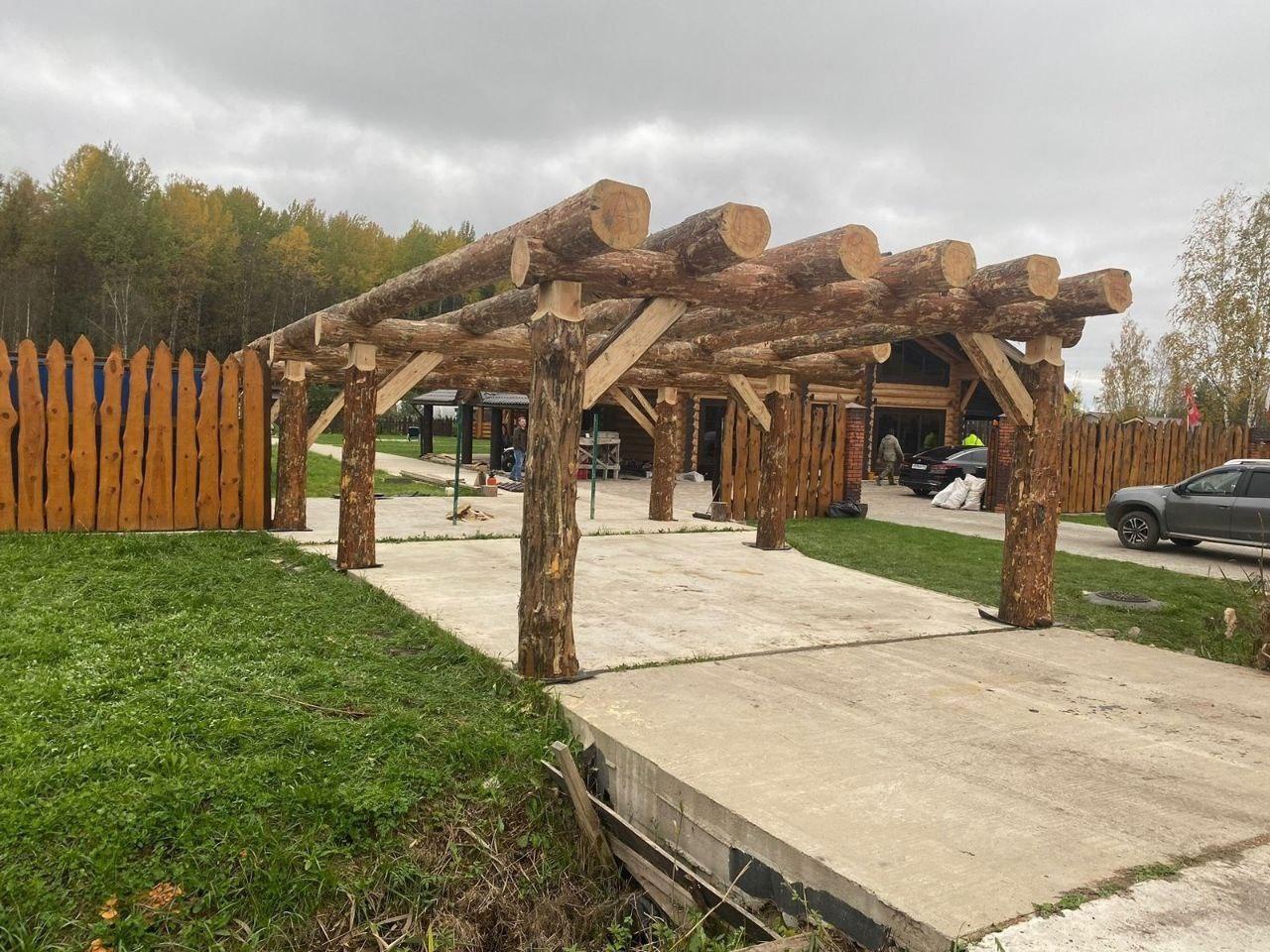 Массивные корневые части (комли) превращаются в мощные опорные столбы, колонны и консоли. Иногда мастера создают из них элементы корнепластики или декоративные формы. Такой приём особенно востребован при строительстве бань в диком стиле и загородных домов премиум-класса.